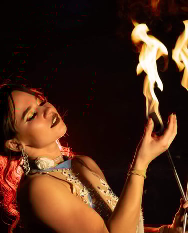 Experience the thrill of our fire and aerial dancers, bringing a touch of magic to your events. Our captivating performances in black and gold color themes will leave your guests mesmerized with fire and sparks lighting up the night.