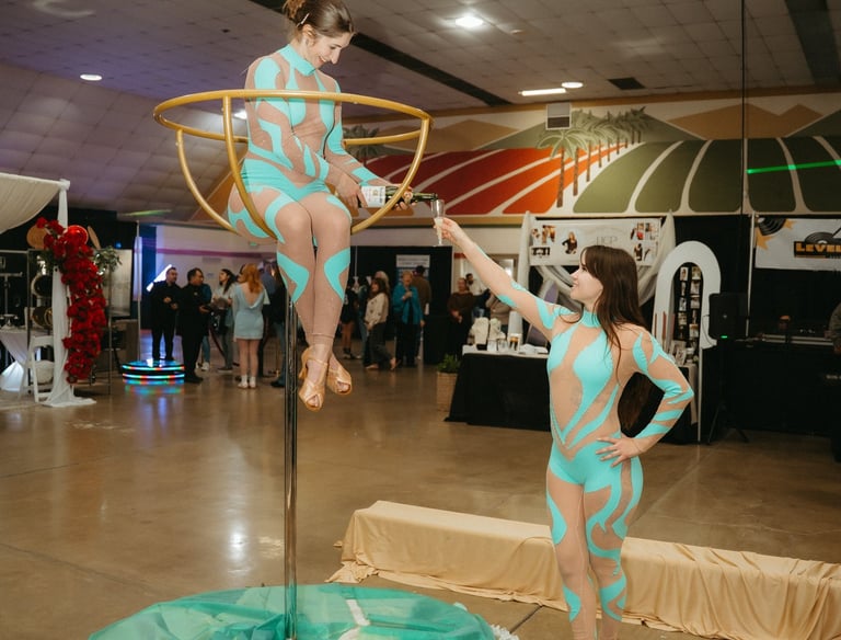 More than just performances, we provide an experience. Our aerial bartenders serve you from one of our exclusive apparatus'.